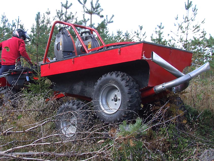La forêt privée peut maintenant être fertilisée d'une manière pratique avec les boguets et remorques ATV-Expert.